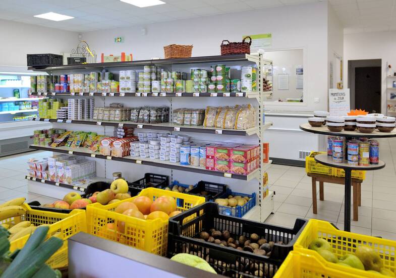 ⇒ Boutique alimentaire proposant des produits à prix solidaires.