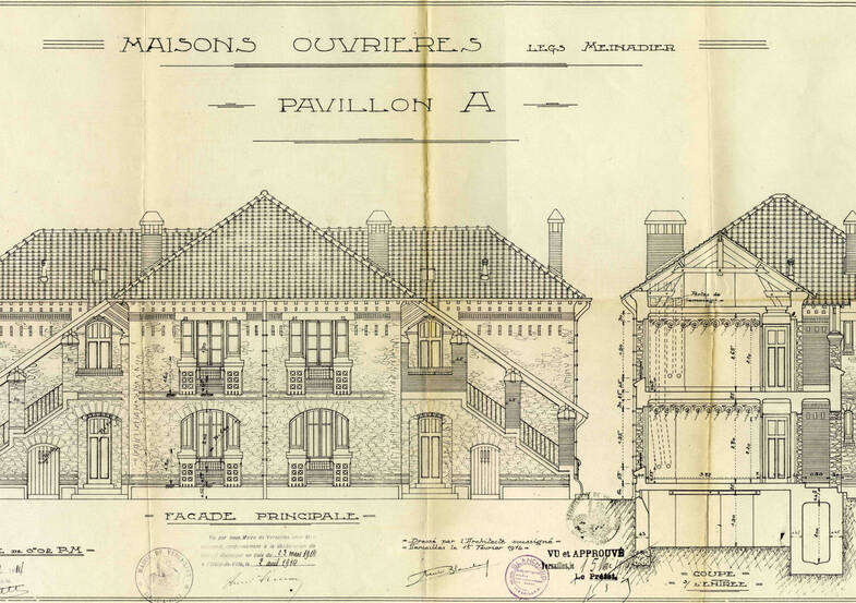 Le concours est ouvert fin 1913 pour la construction de maisons à bon marché au moyen des fonds provenant du legs et l'architecte versaillais Henri Blanchard remporte le premier prix.