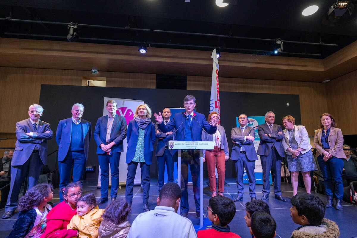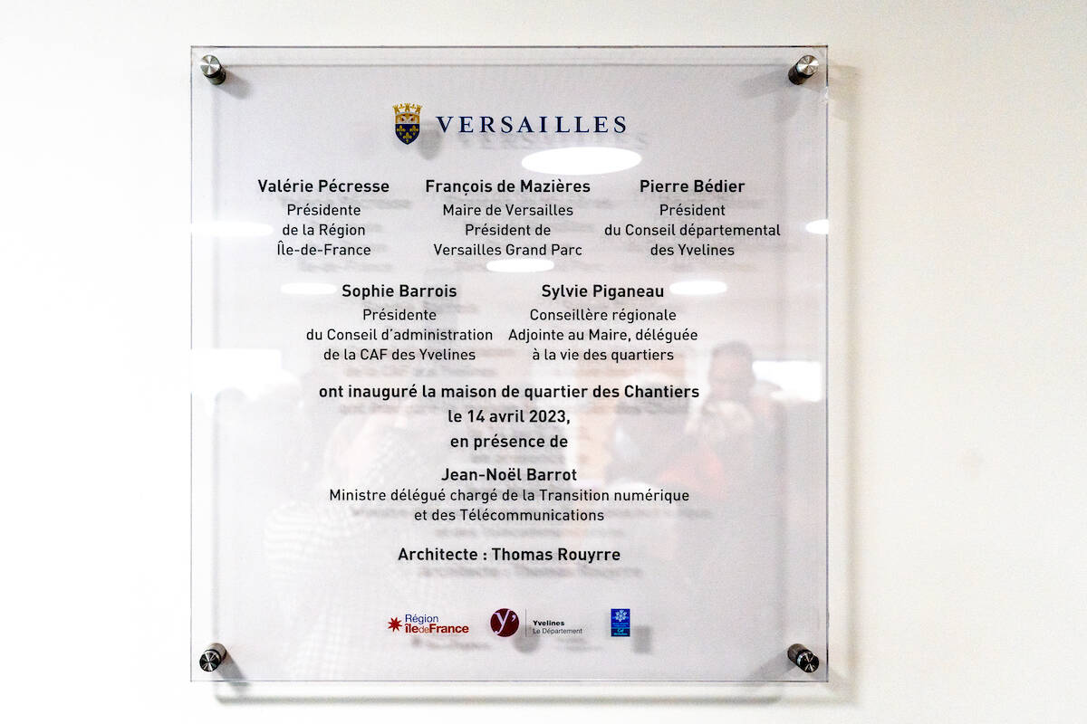 Ce bâtiment a été inauguré le vendredi 14 avril par François de Mazières en présence de Jean-Noël Barrot (ministre délégué chargé de la transition numérique et des télécommunications), Anne Bergantz (députée), Charles Rodwell (député), Michel Laugier (sénateur), Valérie Pécresse (présidente de la région Île-de-France), Pierre Bédier (président du conseil départemental), Sophie Barrois (présidente du conseil d’administration de la CAF des Yvelines), Sylvie Piganeau (conseillère régionale et adjointe au maire à la vie des quartiers) et Claire-Chagnaud Forain (conseillère départementale et adjointe au maire à l'éducation).
