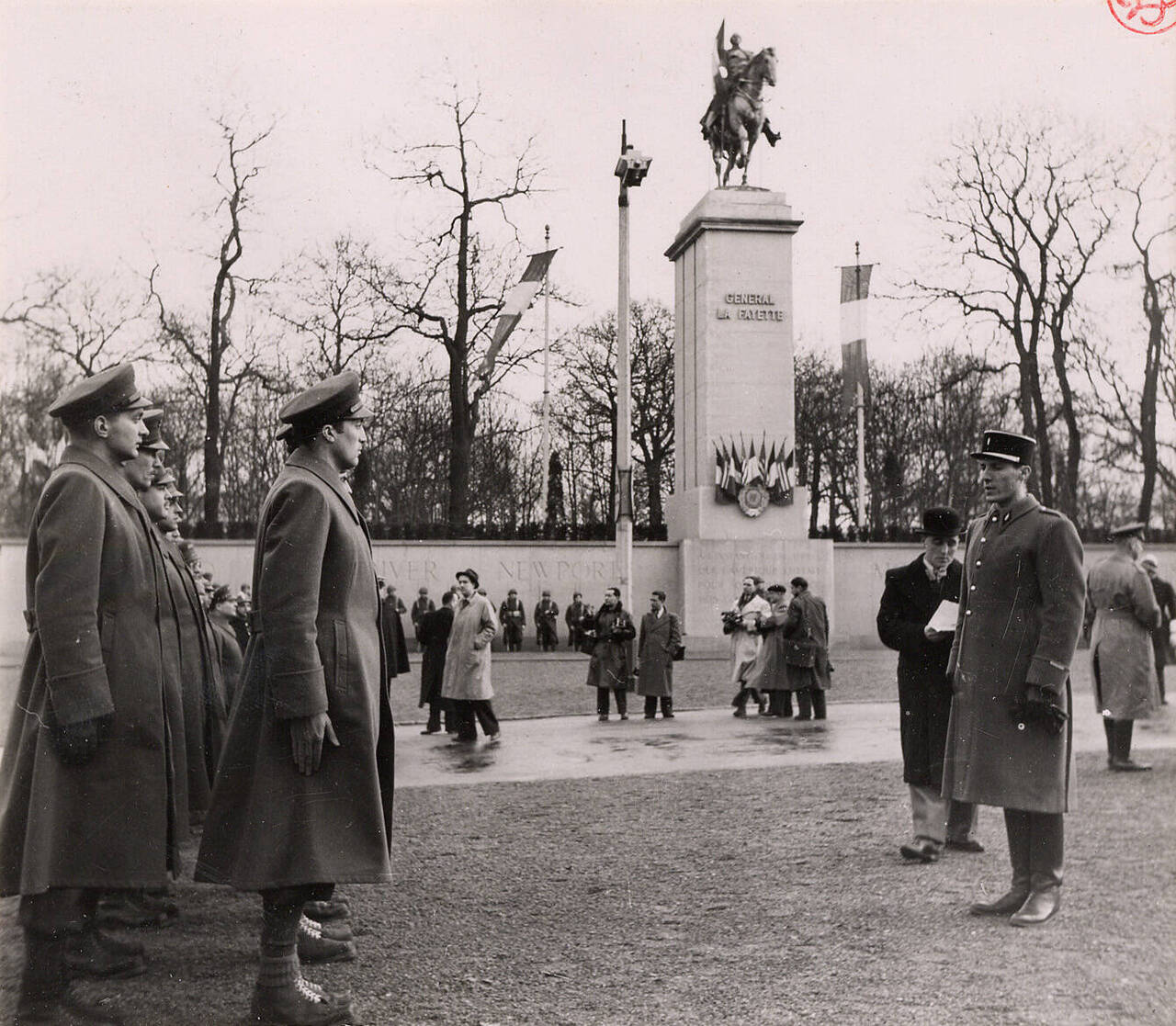 Un concours est organisé en 1937 pour la réalisation à Versailles, berceau de l’indépendance américaine, d’un monument en l’honneur des armées américaines engagées dans la Grande guerre, commémorant également le débarquement de Lafayette aux États-Unis et la guerre d’Indépendance.