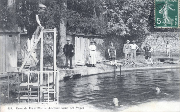 Le bain des Pages (ou des Jambettes) se situe en bordure du domaine de Versailles, entre le petit parc et l'avenue de Trianon, à une centaine de mètres à l'ouest du bassin de Neptune. Ce double réservoir à ciel ouvert avait été mis à la disposition des pages du Roi, ce qui a donné son nom à ce lieu.