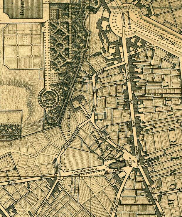 Le chemin aux Bœufs est une voie tortueuse partant du haut de la rue de Montreuil vers le carrefour des cimetières (actuel carrefour des Condamines). Il est jalonné de mares pour permettre aux bestiaux acheminés de Normandie vers Paris de s'abreuver. Le chemin change de nom en 1849 pour prendre celui de rue du Refuge.