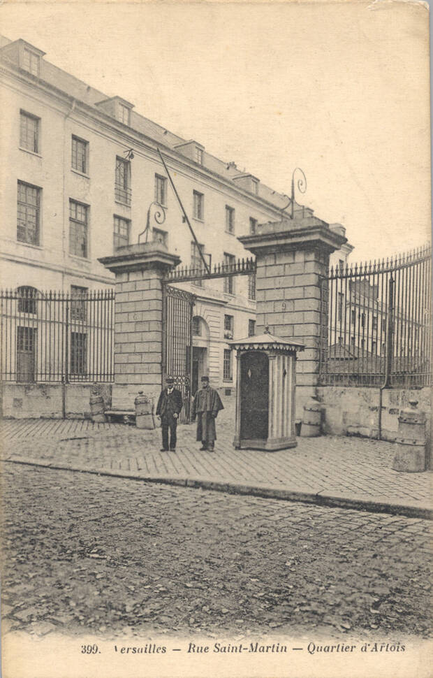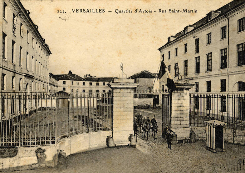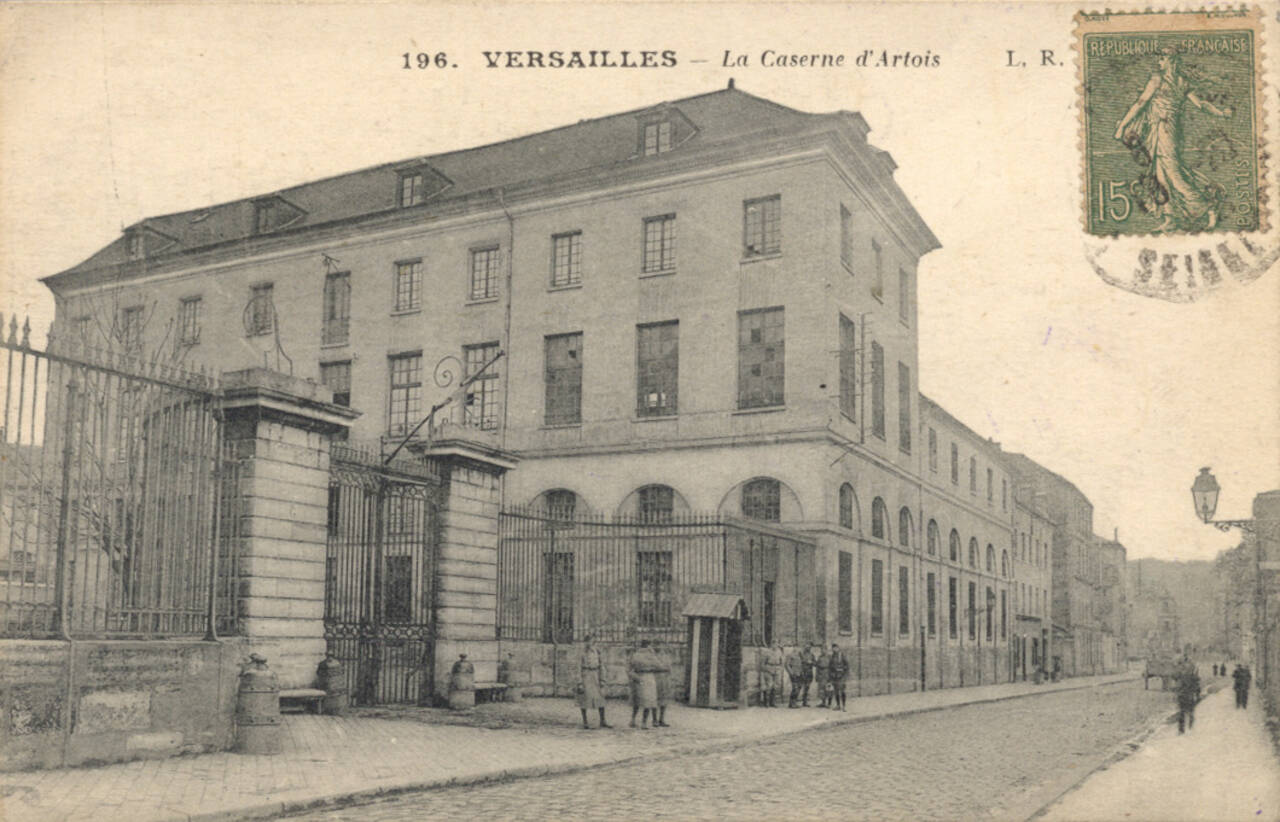 Construite en 1775, elle est destinée à l’origine à abriter l’équipage du comte d’Artois, frère de Louis XVI et futur Charles X. Sous la Révolution, l’hôtel et les écuries deviennent biens nationaux. Un dépôt de la cavalerie de la Garde impériale s’y installe par la suite. La caserne peut alors accueillir 333 hommes de cavalerie, 530 hommes d’infanterie et 224 chevaux.