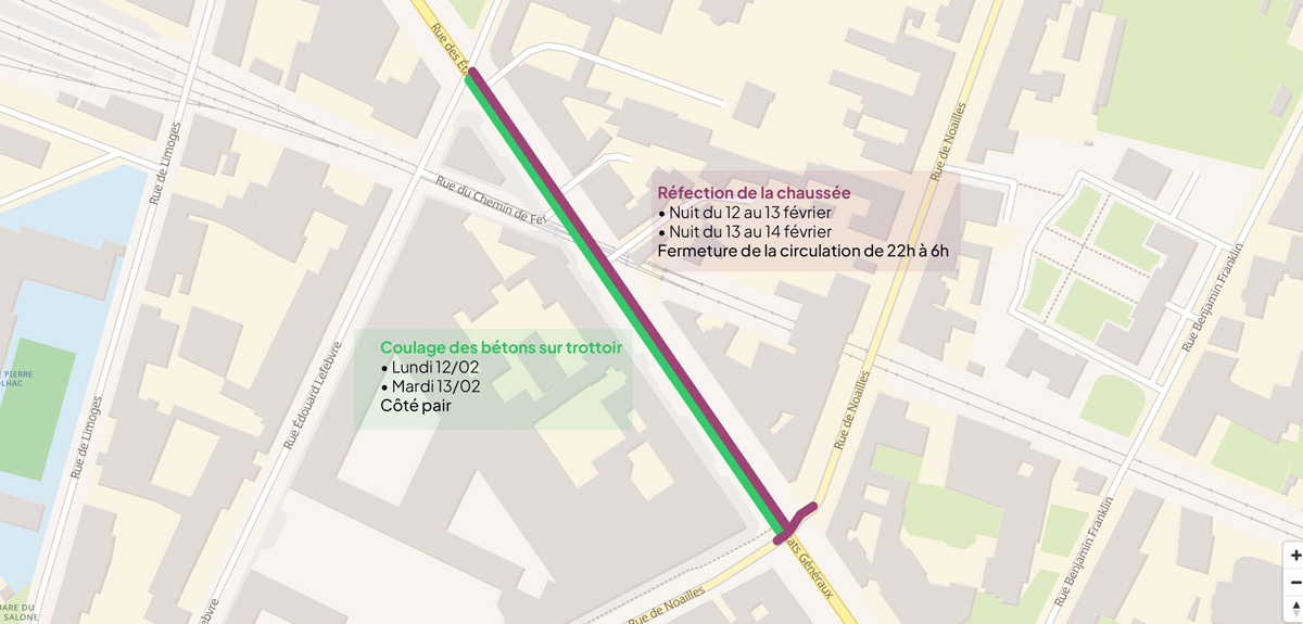 Info travaux rue des États-Généraux : réfection de la chaussée et coulage de bétons sur trottoir