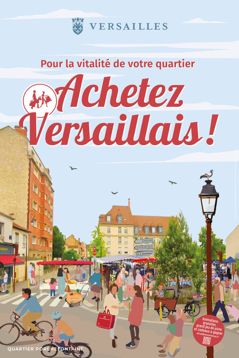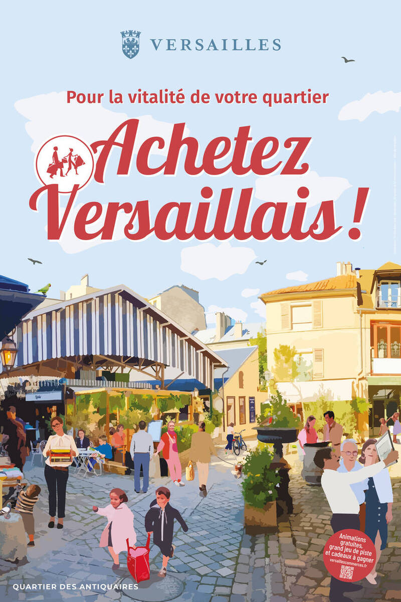 Depuis 15 ans, à l’approche des fêtes de fin d’année, la Ville se mobilise pour inciter les Versaillais à se tourner vers les commerces de proximité par le slogan désormais célèbre « Achetez Versaillais ». Devenu au fil des années un rendez-vous attendu, il constitue un symbole fort de l’attachement de la Ville à ses commerçants.