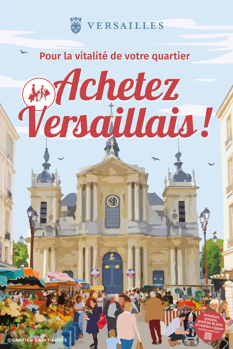 Ce grand jeu de piste s'inscrit dans la 15ᵉ campagne "Achetez Versaillais" lancée par la Ville. Au programme cette année : une grande campagne d'affichage (avec 10 illustrations différentes !), de nombreuses animations et des bons plans pour faire ses achats de fin d'année !