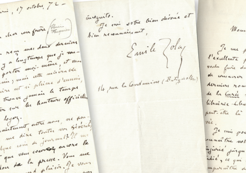 Découvrez deux lettres manuscrites écrites en octobre 1872 de la main d’Emile Zola après la deuxième édition de La Curée, numérisées spécialement à l’occasion de l'exposition et consultables en ligne sur la bibliothèque numérique patrimoniale de Versailles - La Sirène (et sur place grâce aux ordinateurs des bibliothèques).