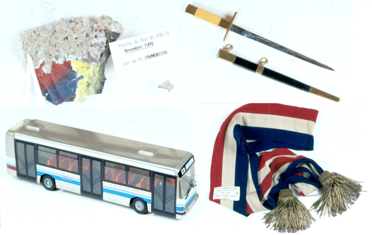 Témoins de la vie municipale, de petits ou de grands évènements, traces de la vie culturelle, associative, économique ou sociale, ou encore objet ayant appartenu à des personnalités locales, ils ont tous une histoire à raconter, complètent et illustrent les archives écrites ou iconographiques. Ils nous font aussi parfois voyager : cadeaux diplomatiques, témoignages de jumelages.