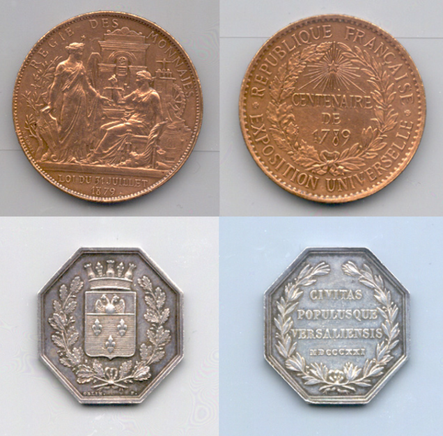 Aux Archives communales de Versailles, le fonds des médailles et petits objets, conservé en sous-série 1 Obj dispose de deux inventaires détaillés. Ce fonds regroupe 470 médailles, monnaies et jetons, insignes, décorations civiles et militaires et divers objets du XIXe siècle à nos jours.