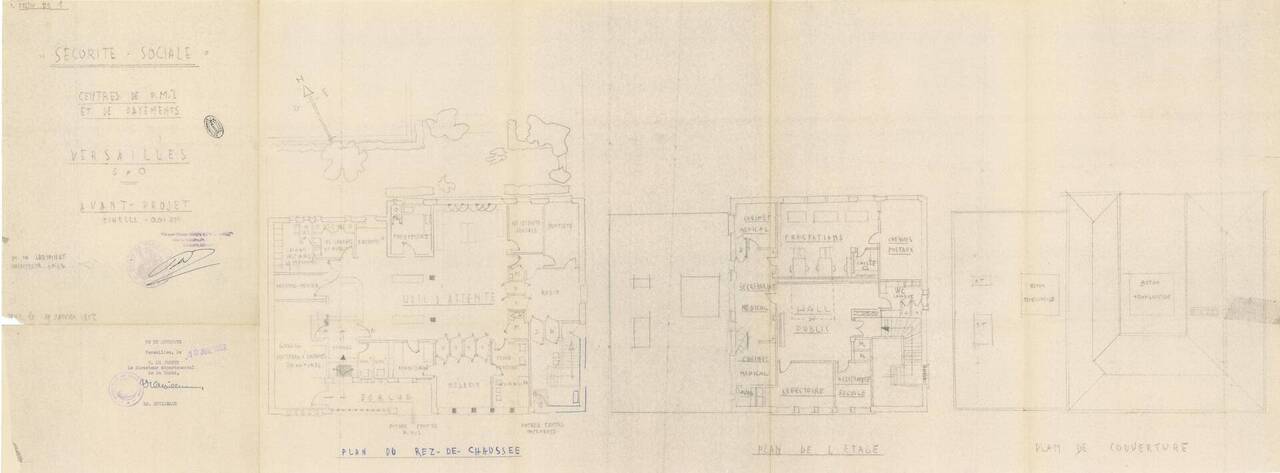 Impasse Montbauron dite du Docteur-Wapler. Acquisition d’un terrain pour la création d’un centre de protection maternelle et infantile et d’un centre de paiement des prestations de Sécurité Sociale. Terrain : DUBOIS. Plan d'avant-projet, 1952. Coll. ACV, 1N50.