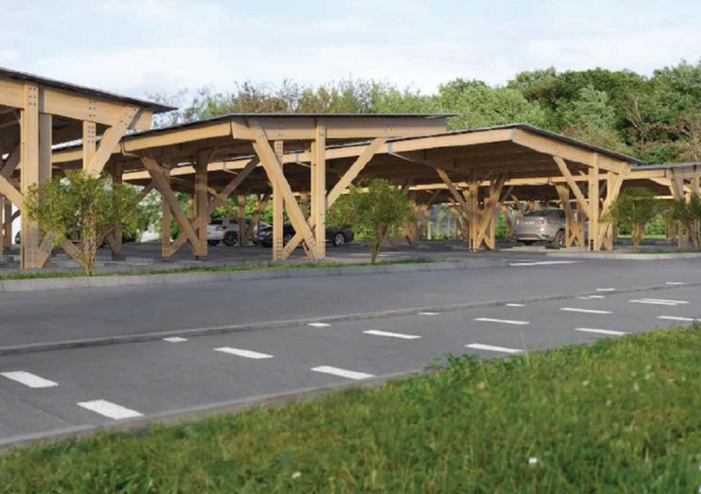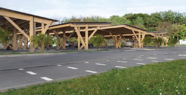 Le projet prévoit la mise en place d'ombrières au-dessus de 55 places de stationnement; la gestion des eaux de pluie et leur infiltration sur de nouveaux revêtements de sol; la requalification complète du parking avec un accès requalifié.