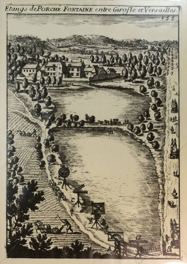 Étang de Porché-Fontaine entre Giroflé et Versailles. Reproduction de gravure, XVIIe siècle. Coll. ACV, 3 Fi 294.