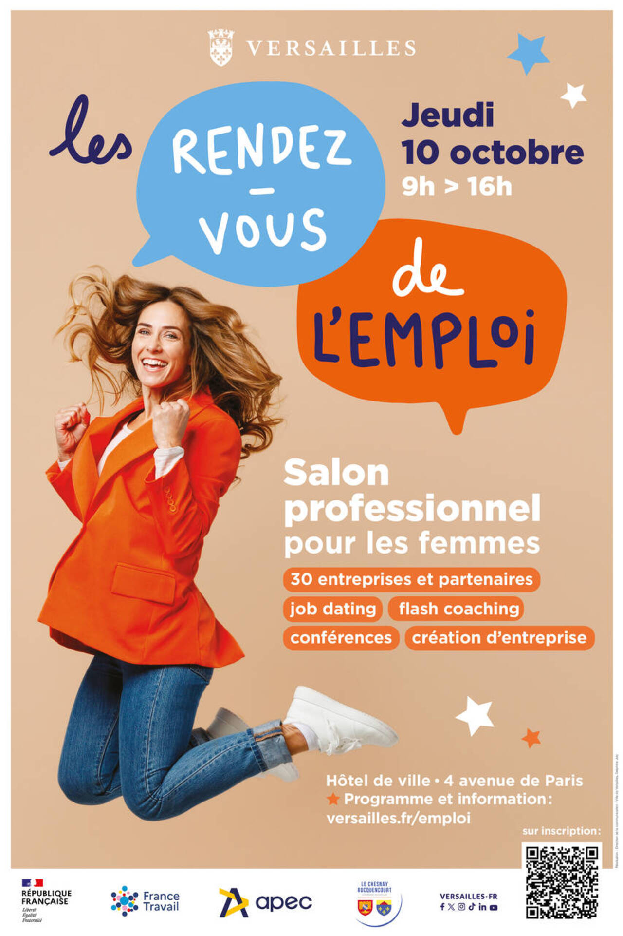 Le 10 octobre, la Ville de Versailles a organisé la 4e édition des Rendez-vous de l'emploi des femmes, en collaboration avec l'APEC, France Travail, la Ville du Chesnay-Rocquencourt et EllesBougent.