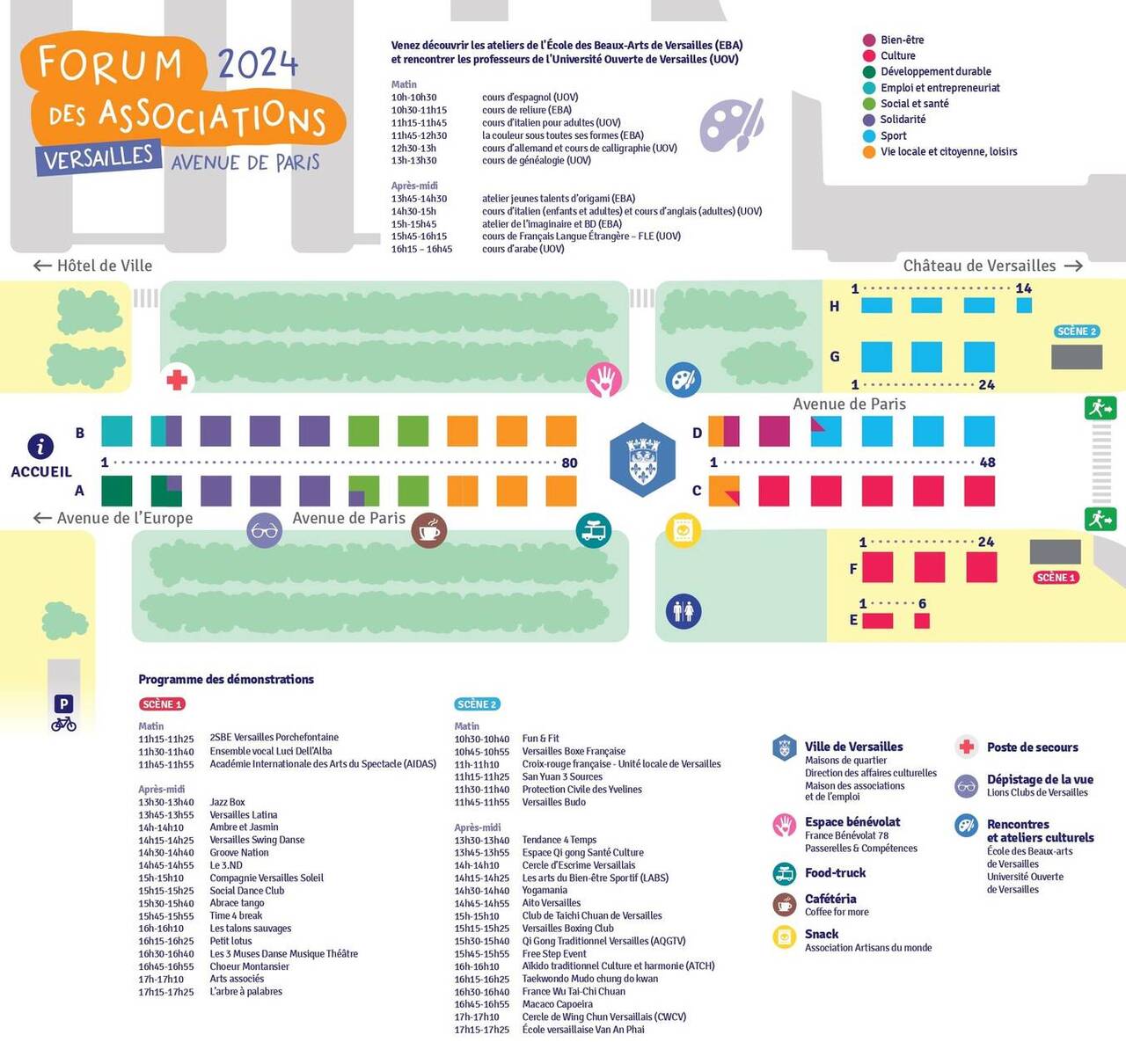 Tous les ans, les bénévoles de 320 associations sont présents pour vous accueillir le jour du Forum des associations. En 2024, les exposants étaient répartis en 7 villages thématiques :