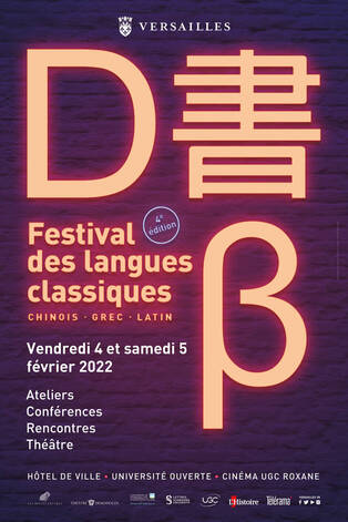 Deux jours dédiés au latin, au grec et au chinois ! Un programme imaginé pour faire vivre ces langues : des conférences, du cinéma, des spectacles et des ateliers accessibles à tous à l'Université Ouverte de Versailles et à l'Hôtel de Ville.