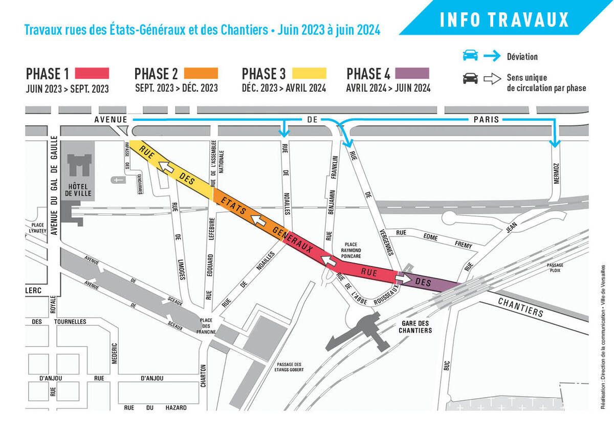 L'apaisement et la végétalisation des rues des États-Généraux et des Chantiers (jusqu’au pont du 8 mai 1945) est terminé. Cet axe majeur entre la gare des Chantiers et le centre historique de Versailles est entièrement réaménagé. Les délais ont été respectés pour les riverains, les commerçants et l'accueil des touristes durant les Jeux Olympiques. Une inauguration aura lieu en septembre.