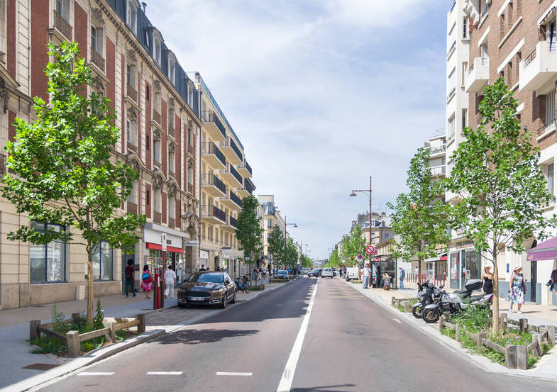 - de développer la trame verte en intégrant dans l’aménagement la plantation d’arbres sous la forme d’un double alignement et de massifs végétalisés assurant ainsi une continuité végétale entre la place Poincaré (mail planté) et l’avenue de Paris (double alignement d’arbres et bandes enherbées).